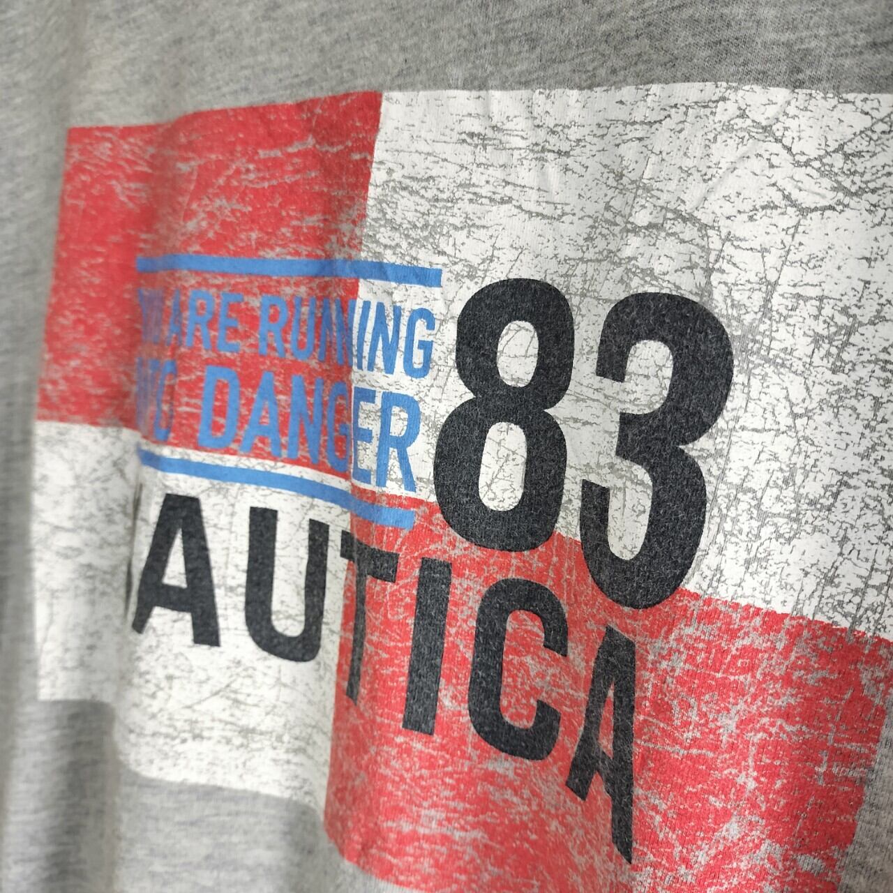 シンプルなデザインながらも味わい深いNAUTICAのバックプリントTシャツ。