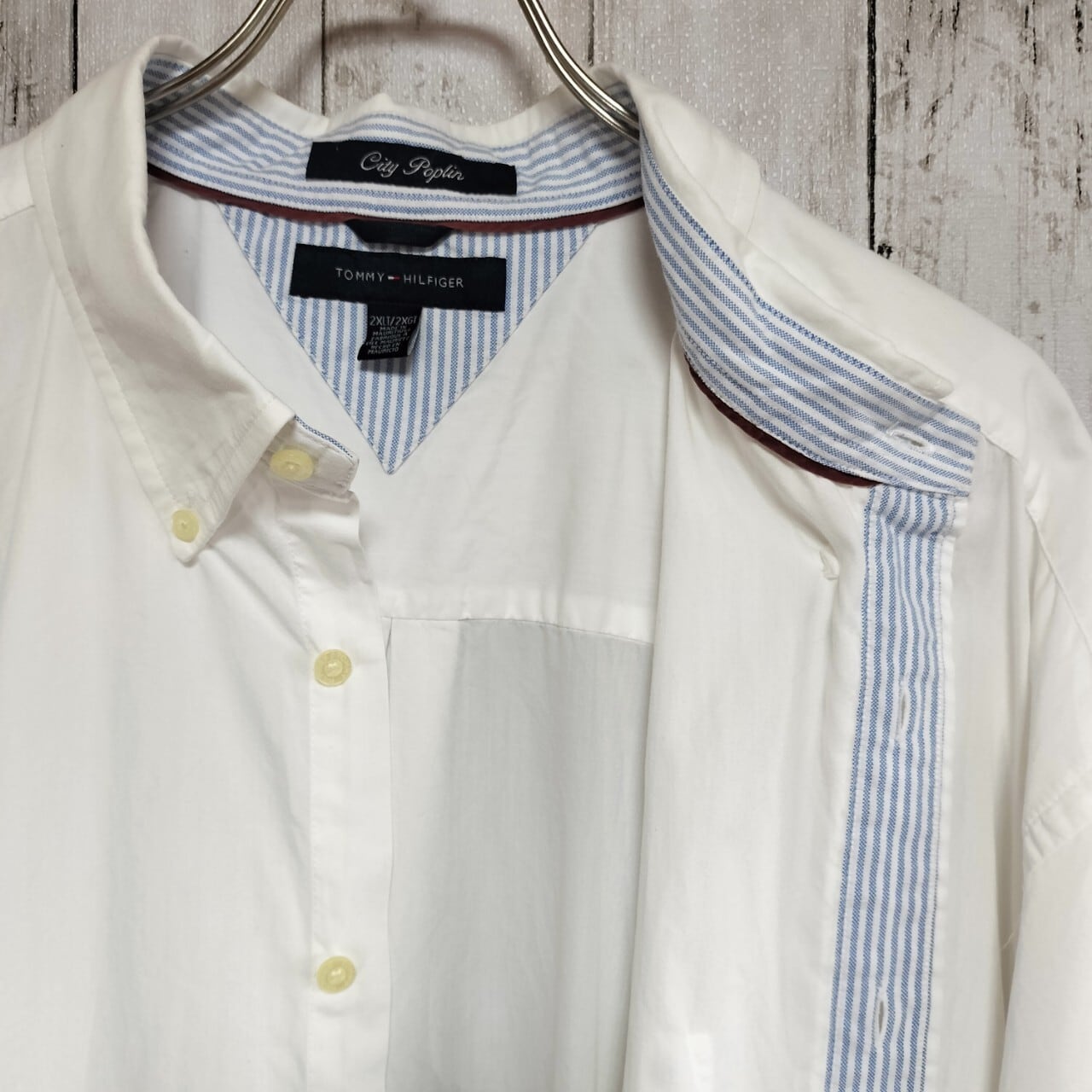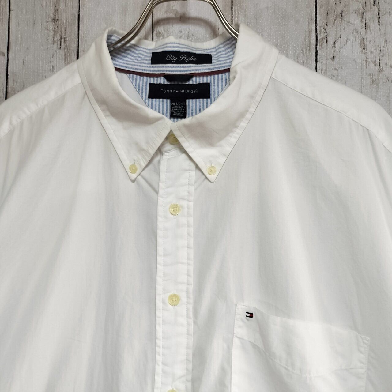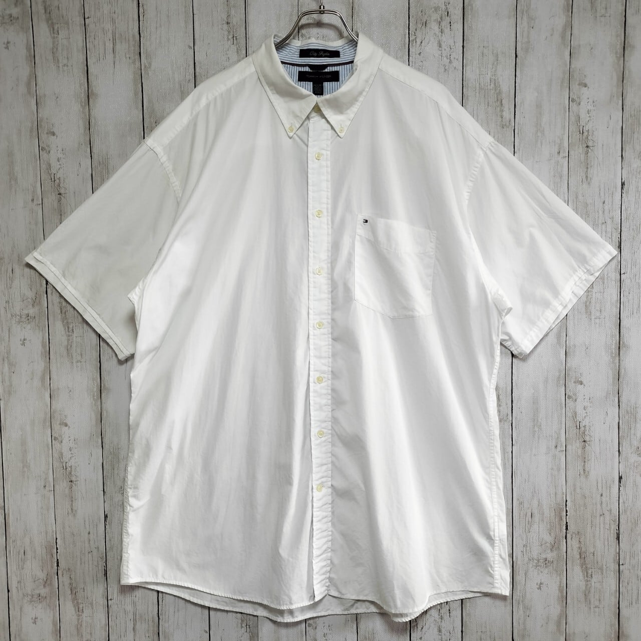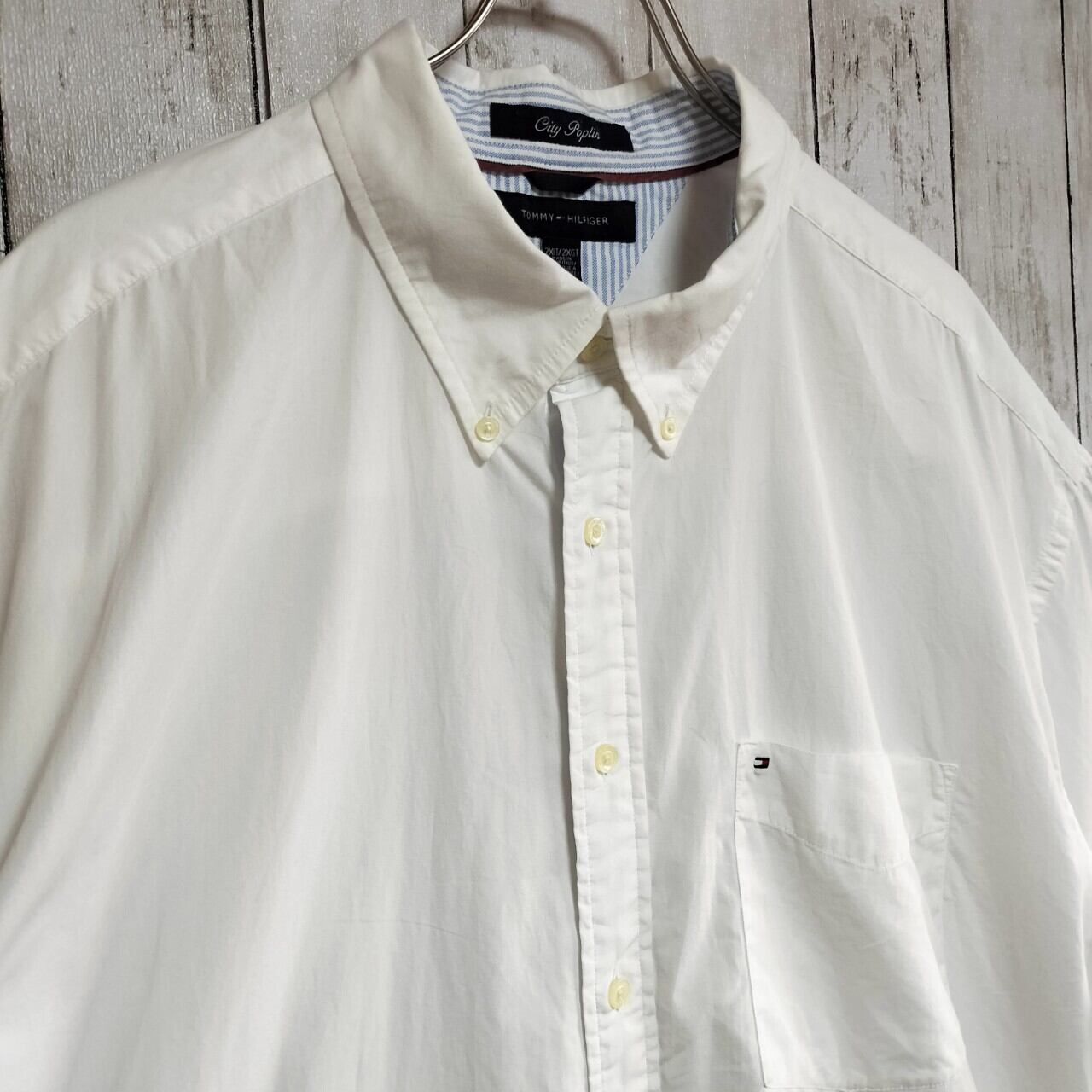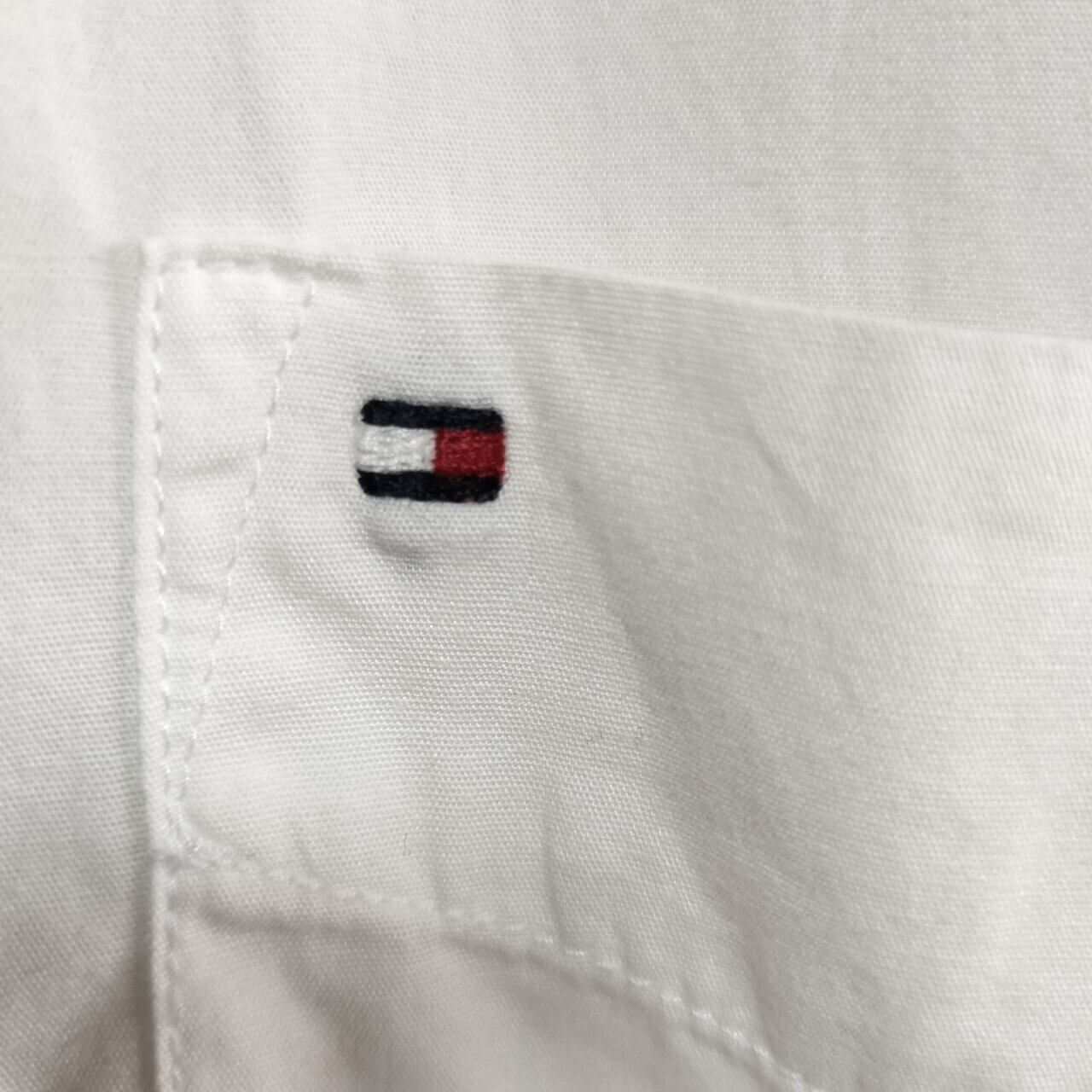 TOMMY HILFIGERのホワイト半袖シャツは、爽やかな印象で夏にぴったりの一着です。