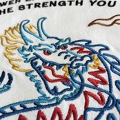 フロントには虎とパラシュート、背中には迫力のある龍の刺繍入り。プリントでは味わえない立体感と存在感が特徴です。