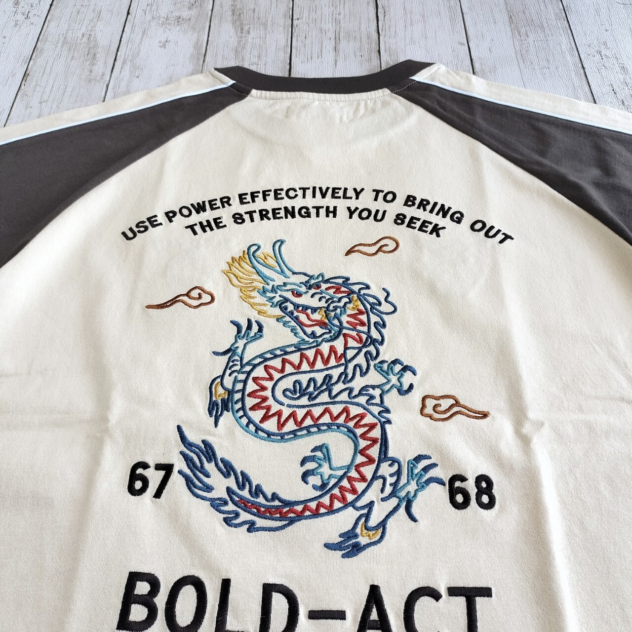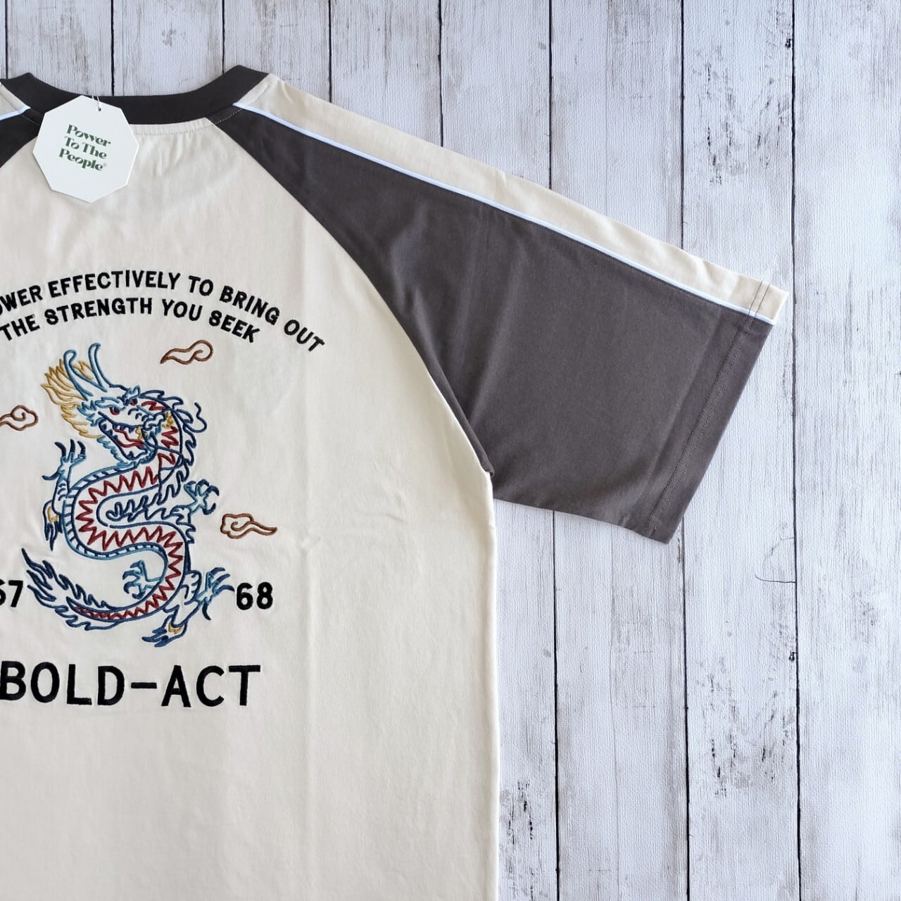 こちらは、スカジャンをイメージした刺繍デザインが魅力のラグランTシャツです。