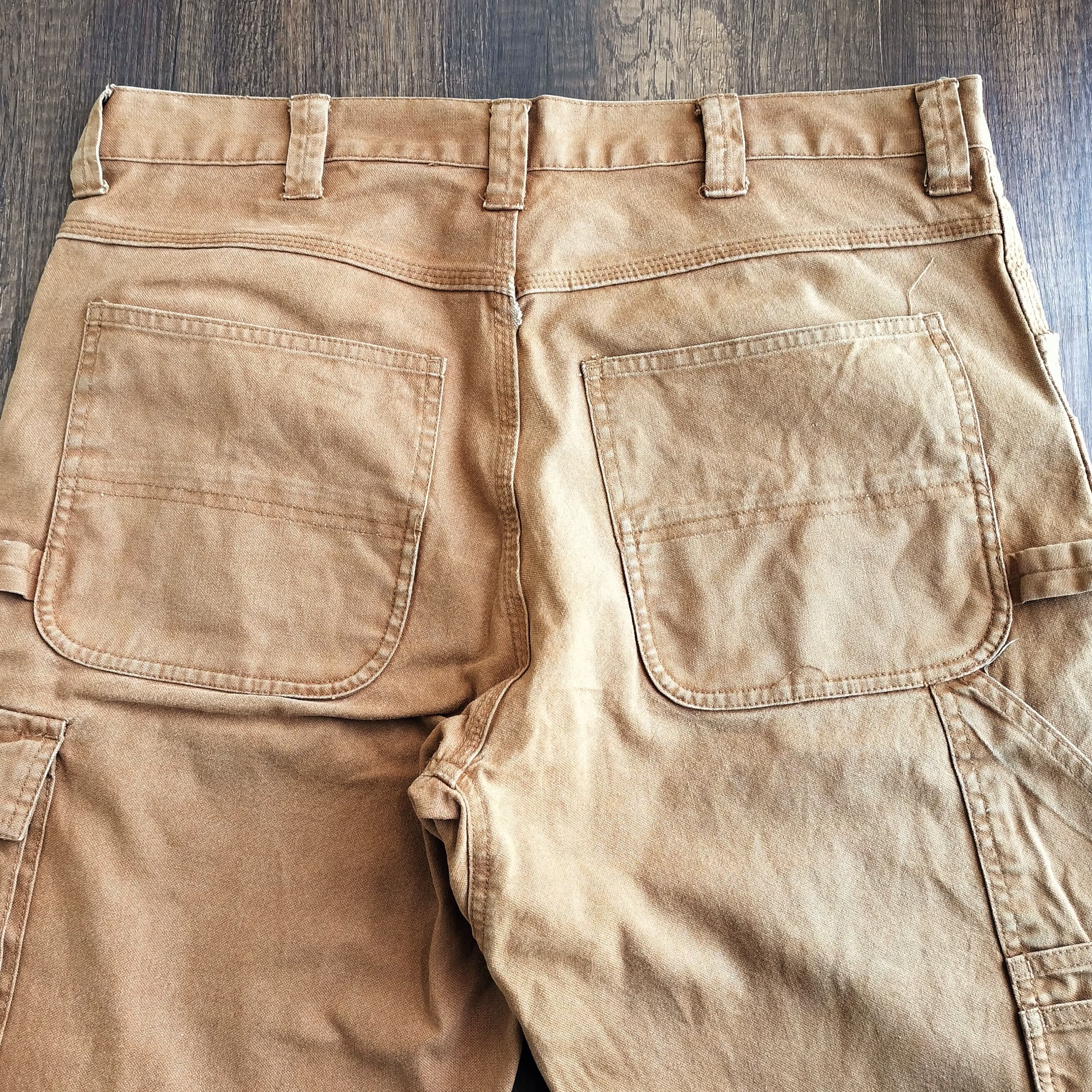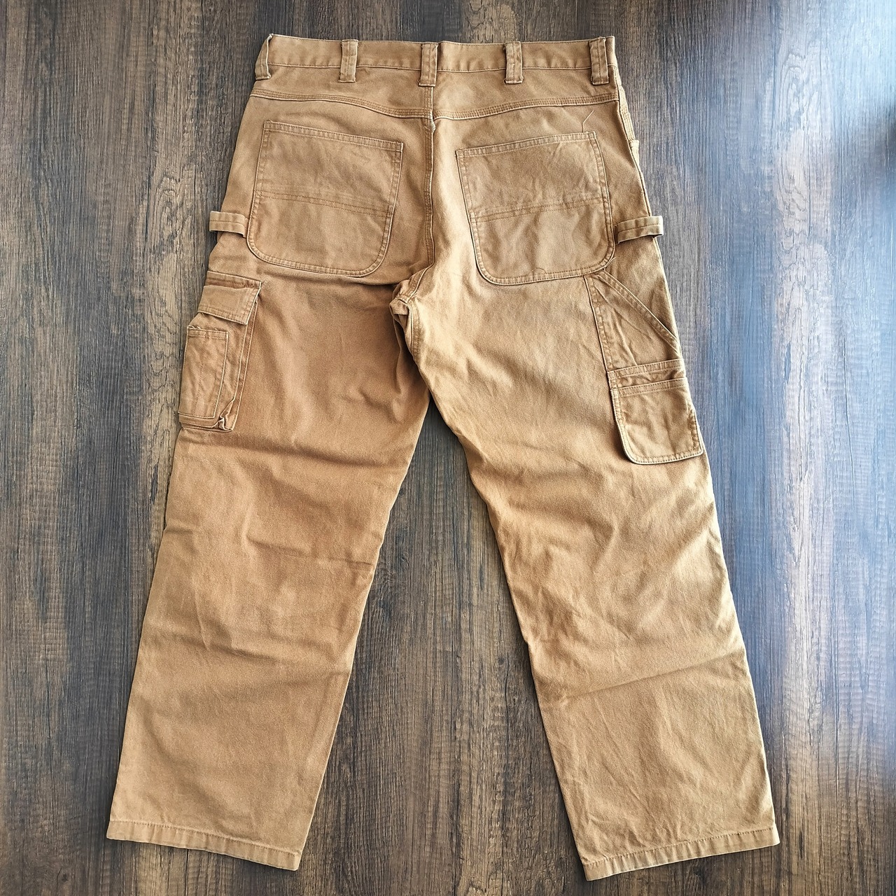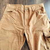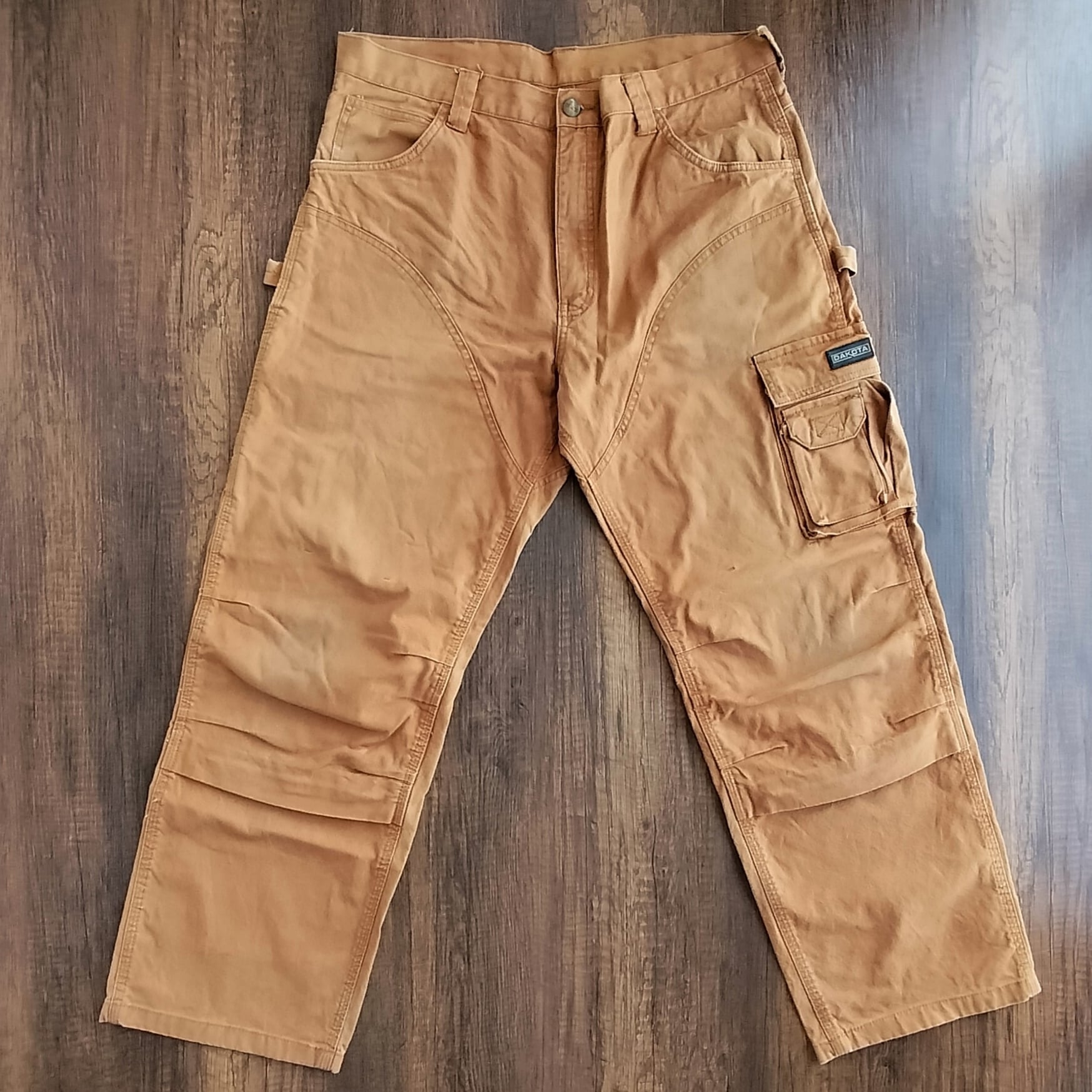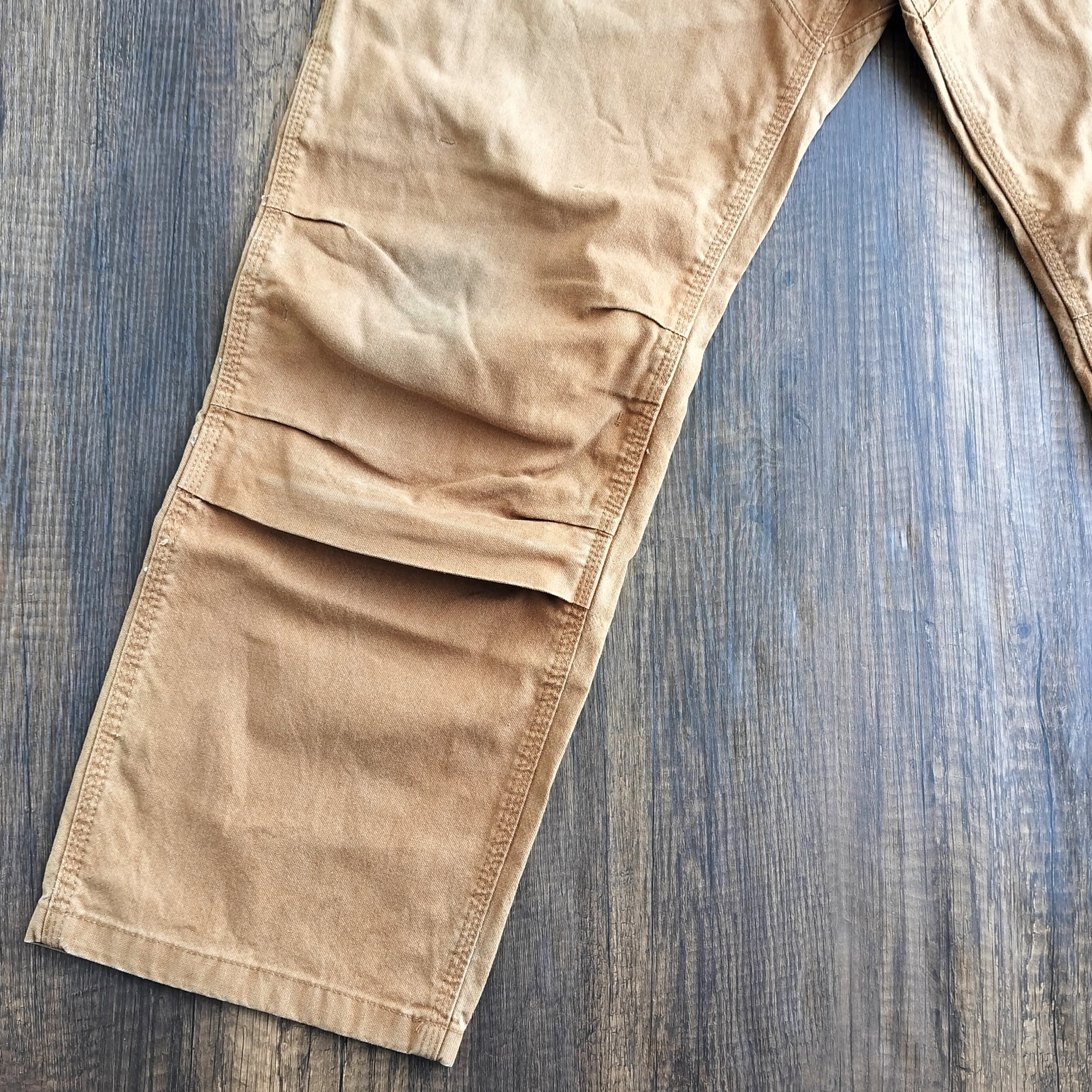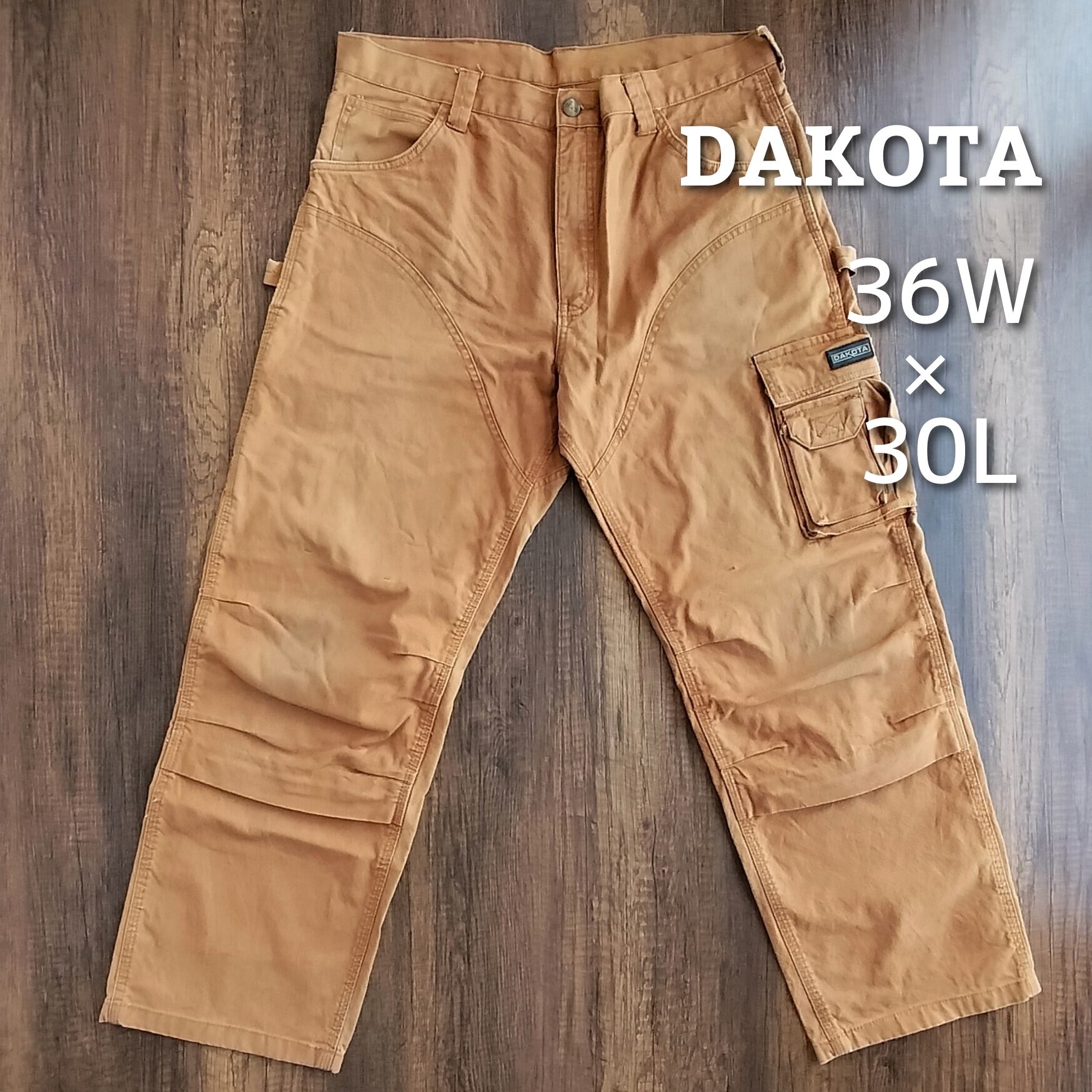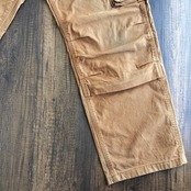 膝や腿にダック特有のアタリや擦れがございますが、ワークパンツらしい良い風合いとして雰囲気を高めてくれています。
