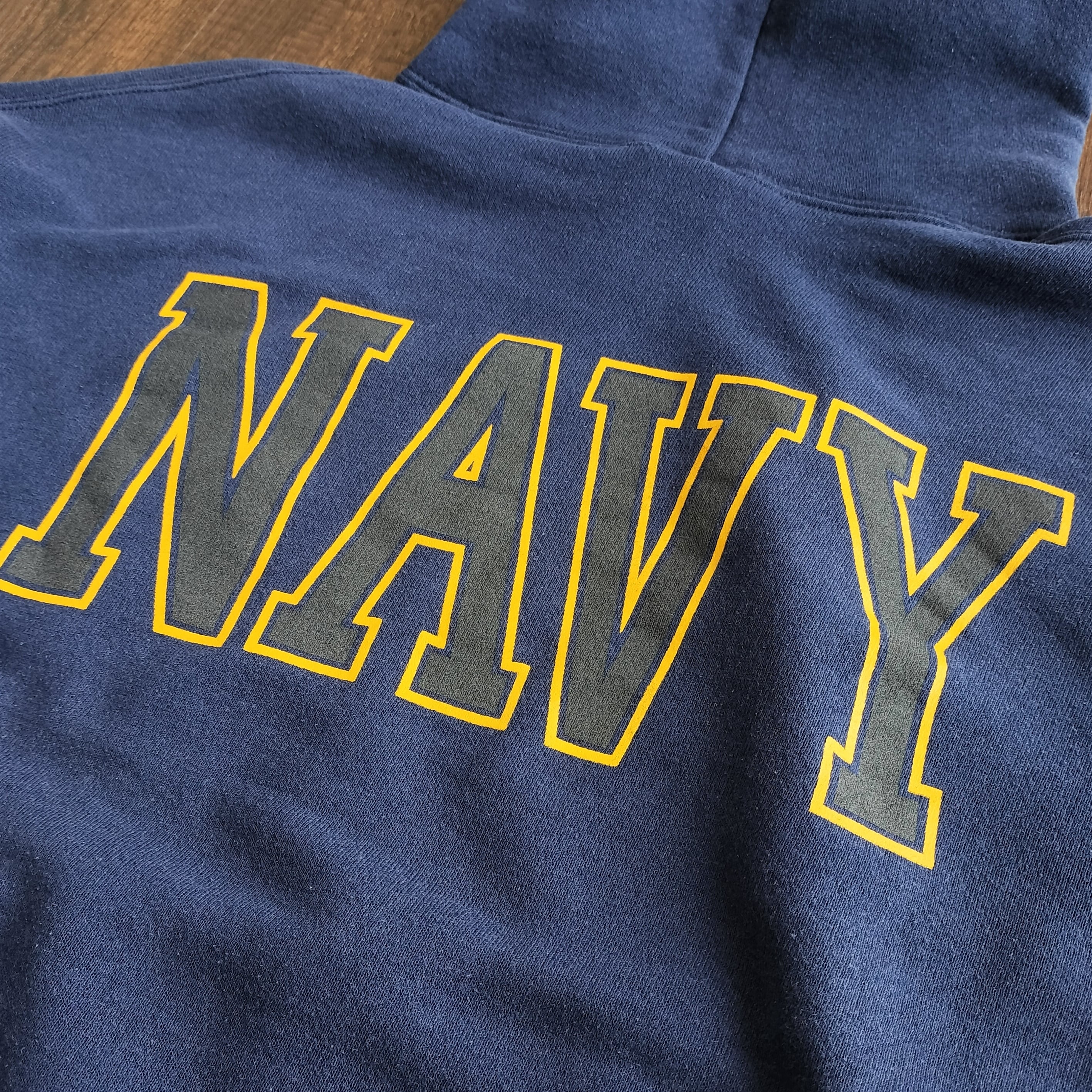 ネイビーボディに映えるU.S. NAVYのプリントが、シンプルながら存在感のあるスウェットパーカーです。